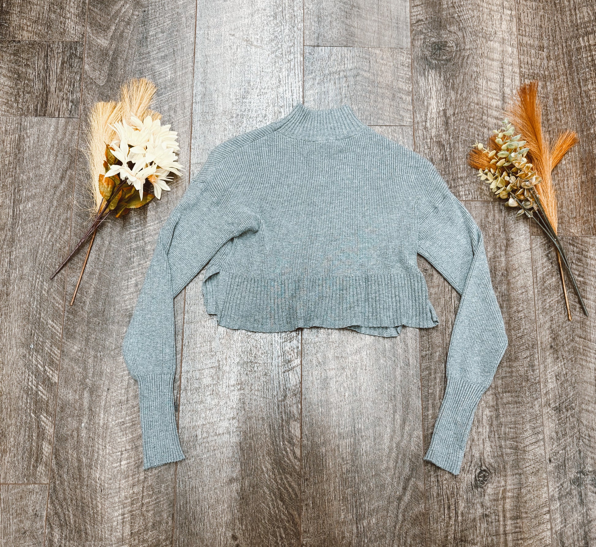 Arizona Jean Co. grey ruffle cropped long sleeve
